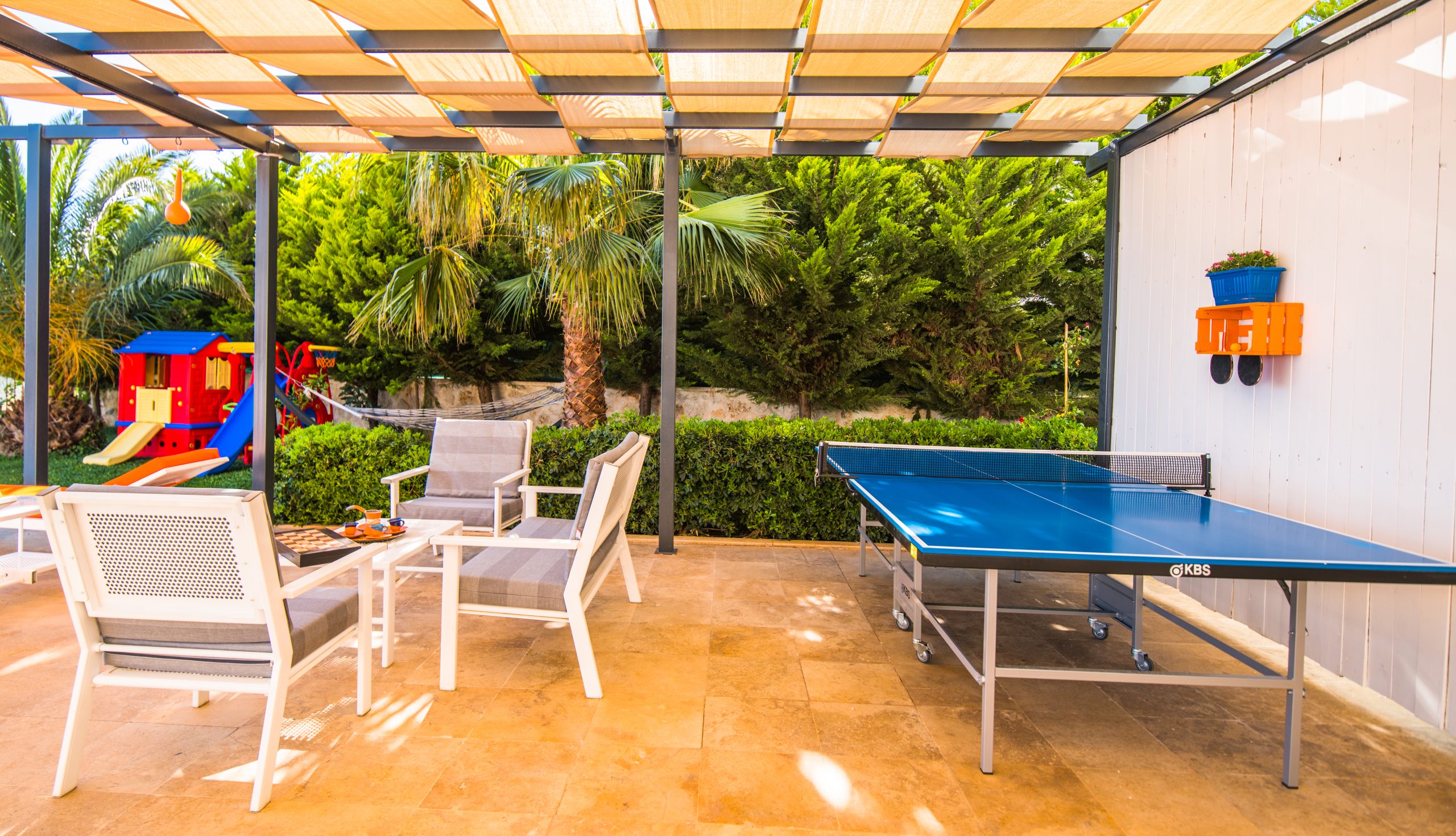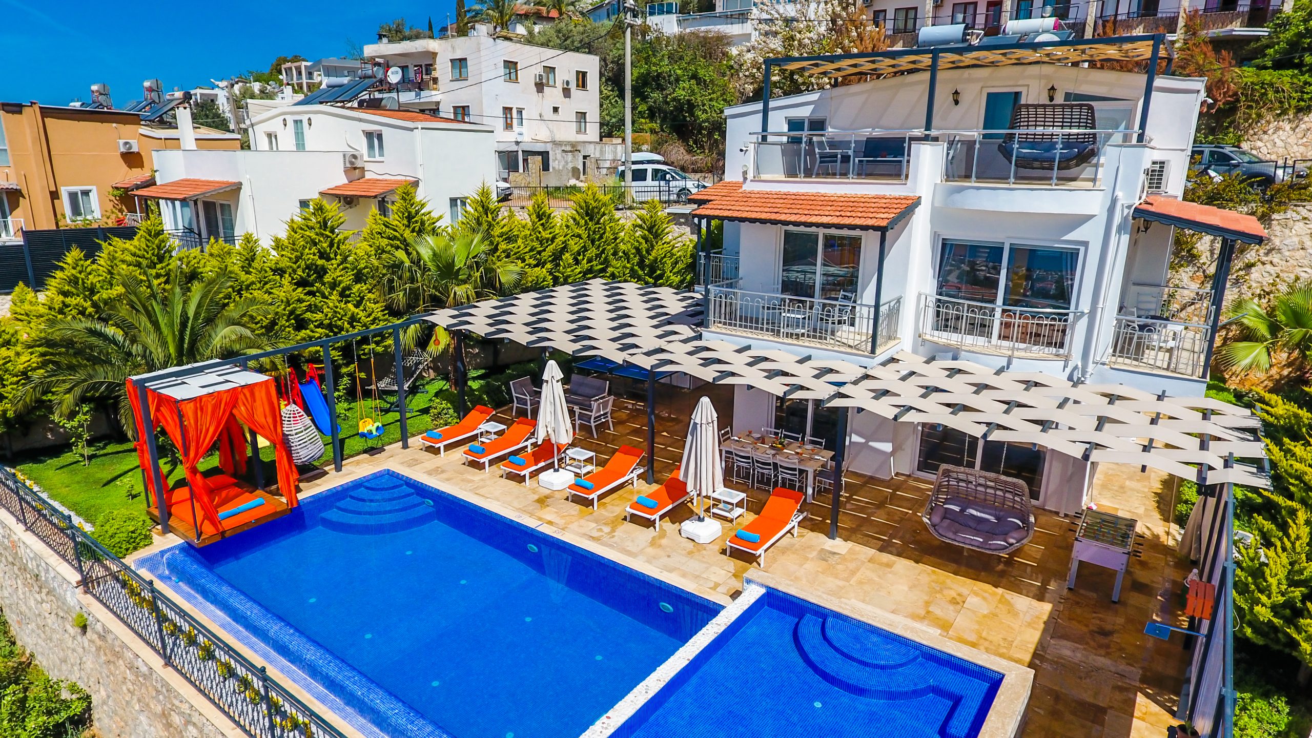 Villa modern ve konforlu mobilyalarla döşenmiştir. Tam donanımlı mutfağı günlük kullanım için pratiktir. Havuz terasında salıncak ve BBQ alanı bulunur; ayrıca villaya ait küçük bir bahçe alanı da mevcuttur.